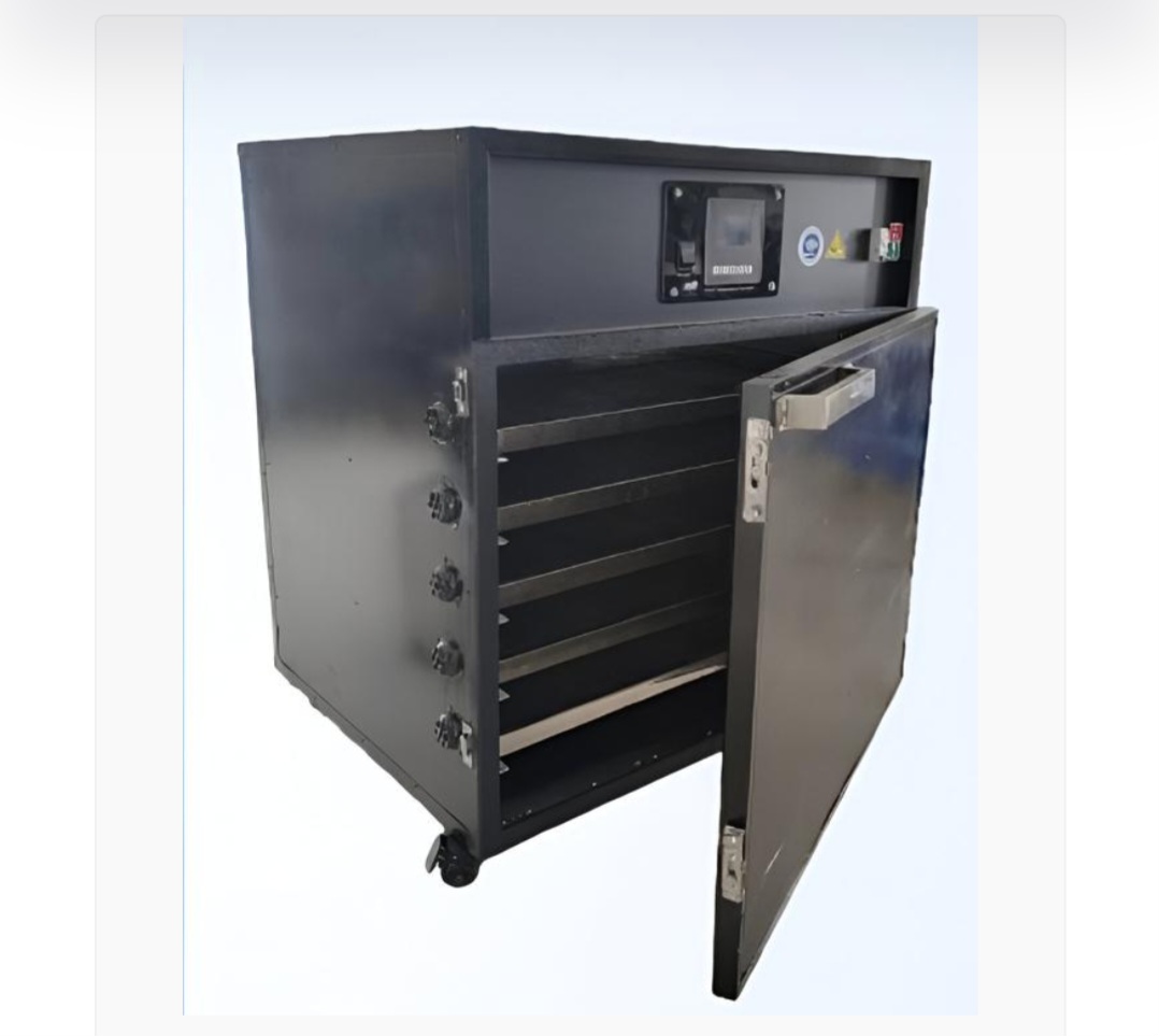A tray dryer is a batch-operated chamber that uses heated air circulated by fans to remove moisture from solid materials stacked on trays. Often used in pharmaceutical and food industries for delicate products, it operates through forced convection, with 80-90% air recirculation for efficiency. Tray dryers (or dehydrators) are ideal for low-volume production.